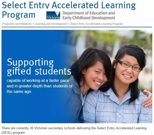 这是政府的教育项目(Selected Entry Accelerated Learning Program),目前维州只有36所具有此资格。项目对资优的学生进行筛选和特殊培育,充分发掘和培养这些极具天赋的学生潜质。